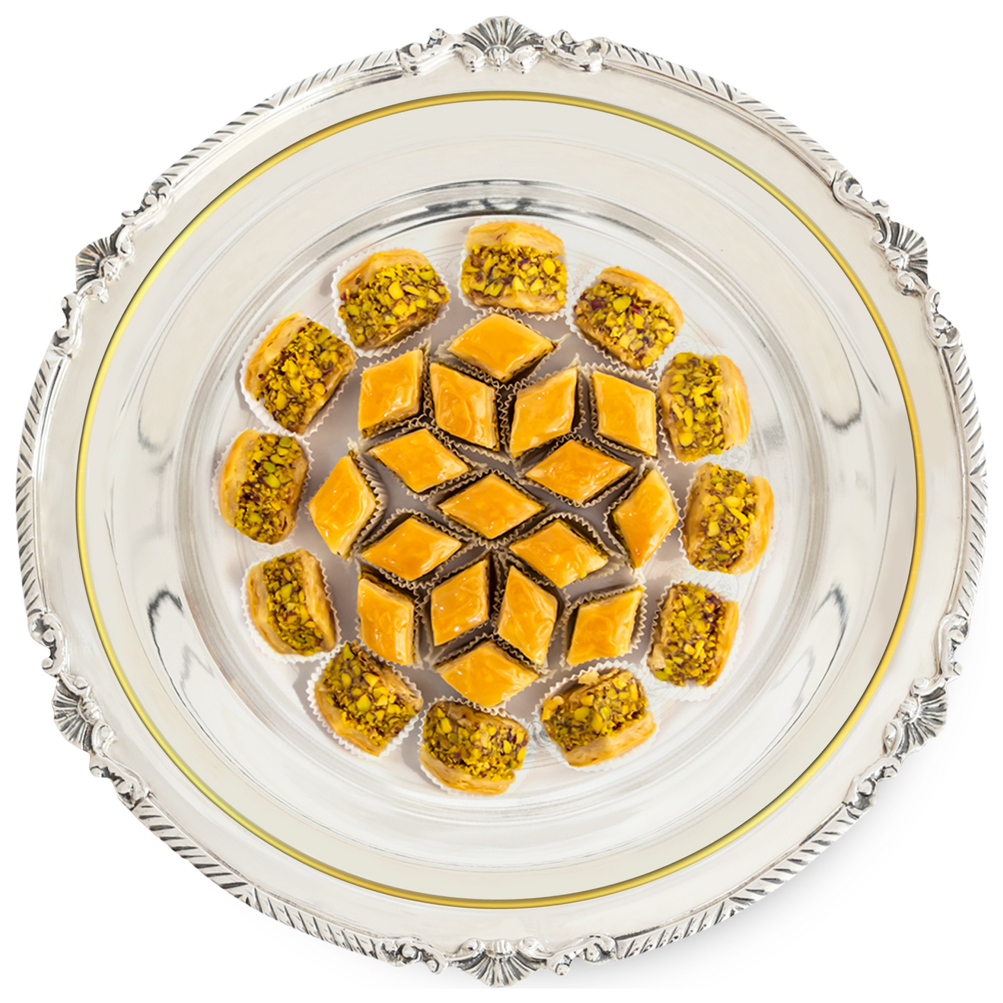 Experience the irresistible taste of Pistachio Baklava, a delectable pastry infused with the rich and nutty flavor of pistachios, delicately scented with rose aroma, and enveloped in layers of delicate phyllo dough sheets. Each piece is a culinary masterpiece, soaked in sucrose syrup to create a sweet and satisfying treat, cut into small lozenges for your enjoyment.