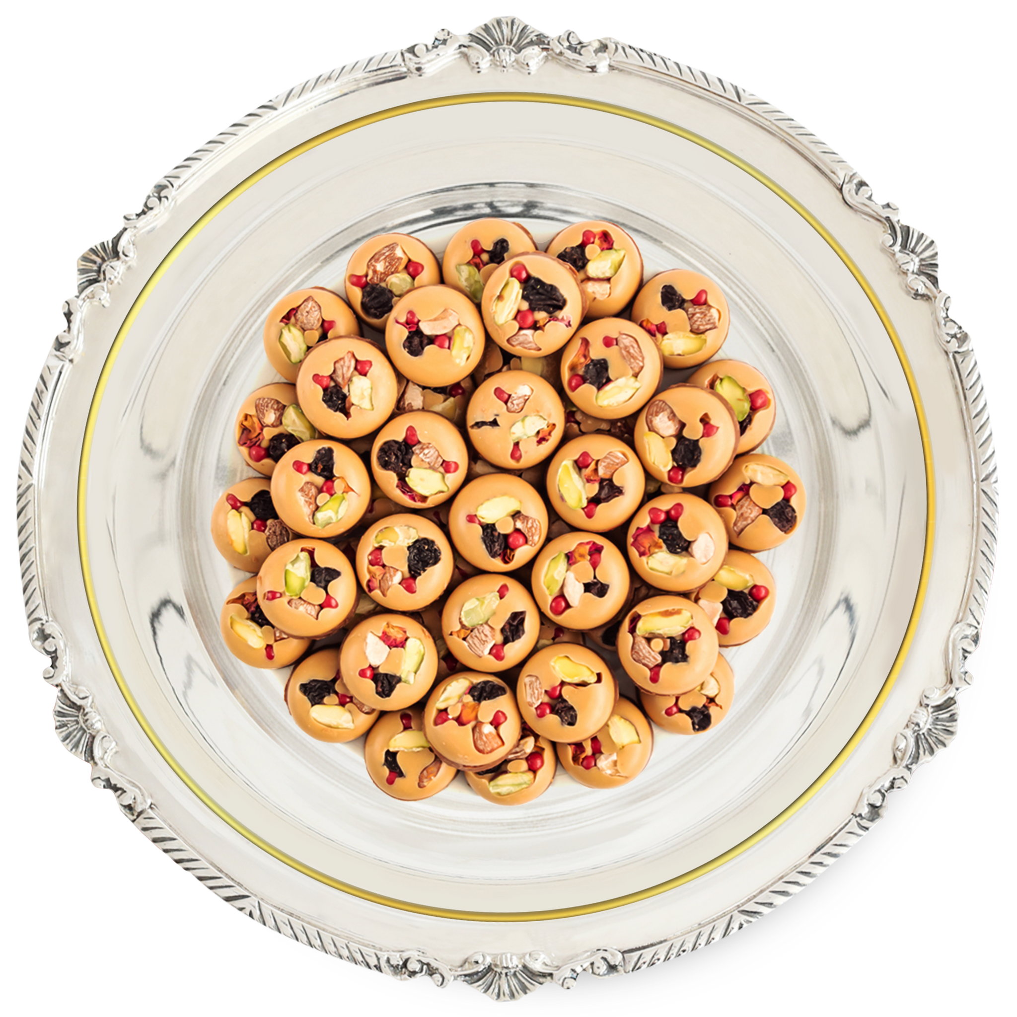 Offrez-vous une expérience sensorielle unique avec notre Plaisir Dulcey : une pâtisserie tunisienne de luxe alliant chocolat Dulcey, noisette, amande, pistache et des perles croquantes à la framboise. Chaque pièce fond en bouche et révèle une combinaison raffinée de textures croustillantes et fondantes.